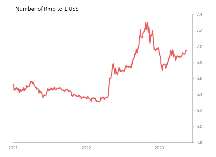April's results are the clearest indicator yet that China's re-starting/recovery cycle has not gathered momentum. So we should absolutely expect further stimulus. Here's a chart of the Rmb.