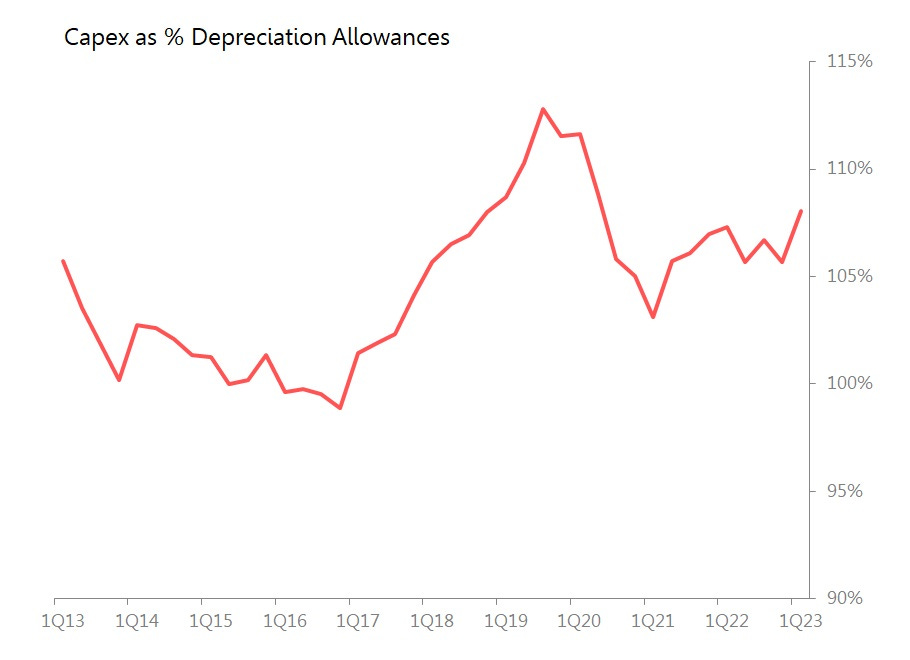 Second, with capex rising 11.4% yoy whilst depreciation allowance rose only 4.2%, it is just imaginable that corporate Japan is toying with the idea of investing more than is required to offset depreciation.