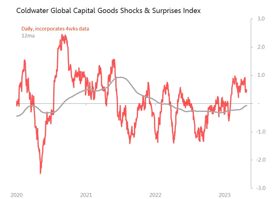 Since the beginning of the year, capital goods indicators have tended to surprise, modestly, for the longest sustained period since 1H21. It remains a fragile recovery, though, and evidence from the US suggests we should expect little positive momentum in coming months.