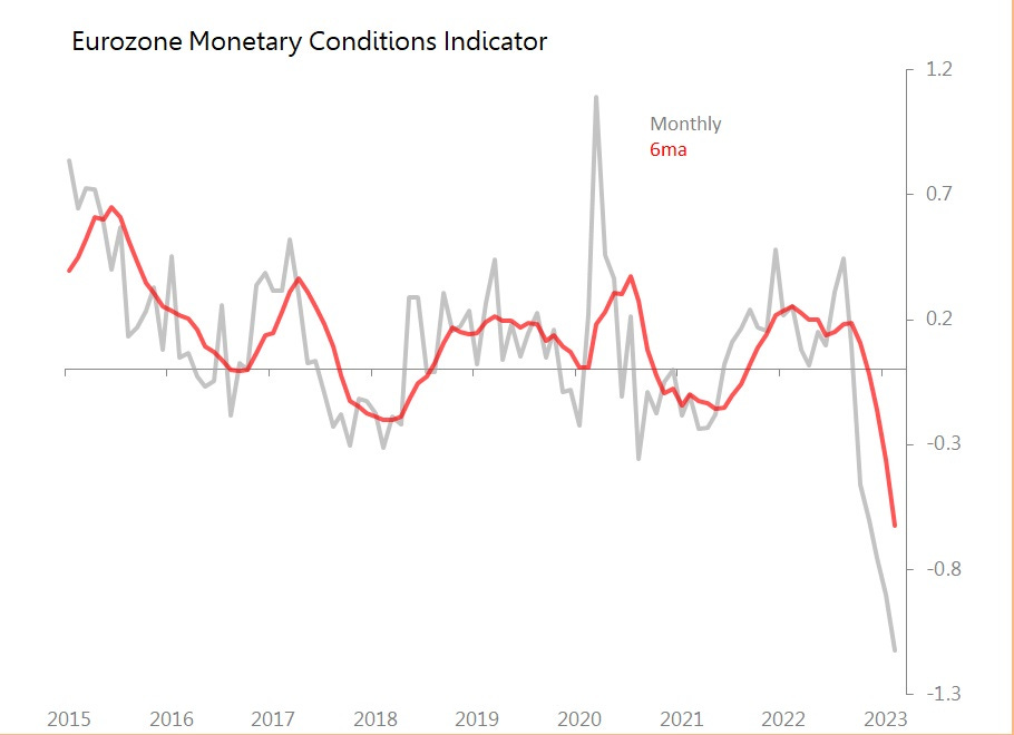 Given the stress revealed in the Eurozone’s banking system, one can certainly expect credit conditions to tighten further in the coming months - it seems as inevitable in Europe as it does in the US.